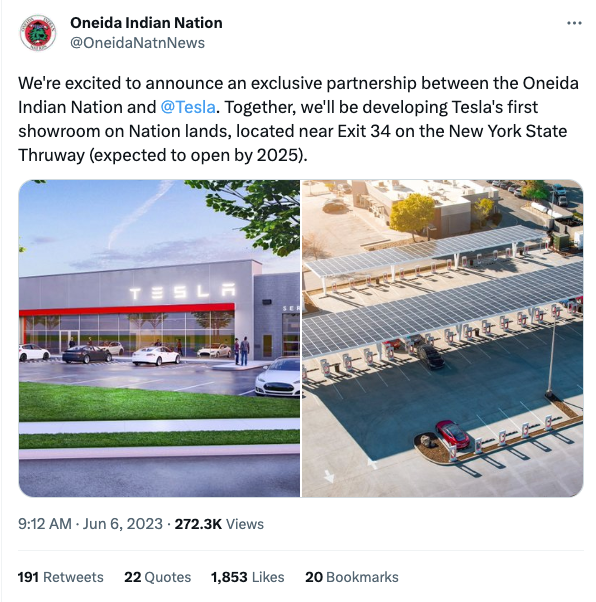 When announcing a collaboration with Tesla, the Oneida Indian Nation Twitter account took off specifically on Twitter. After the tweet was liked by both @Tesla and @ElonMusk community management became essential. Not only to continue the virality of the tweet, but also to combat any political negativity.